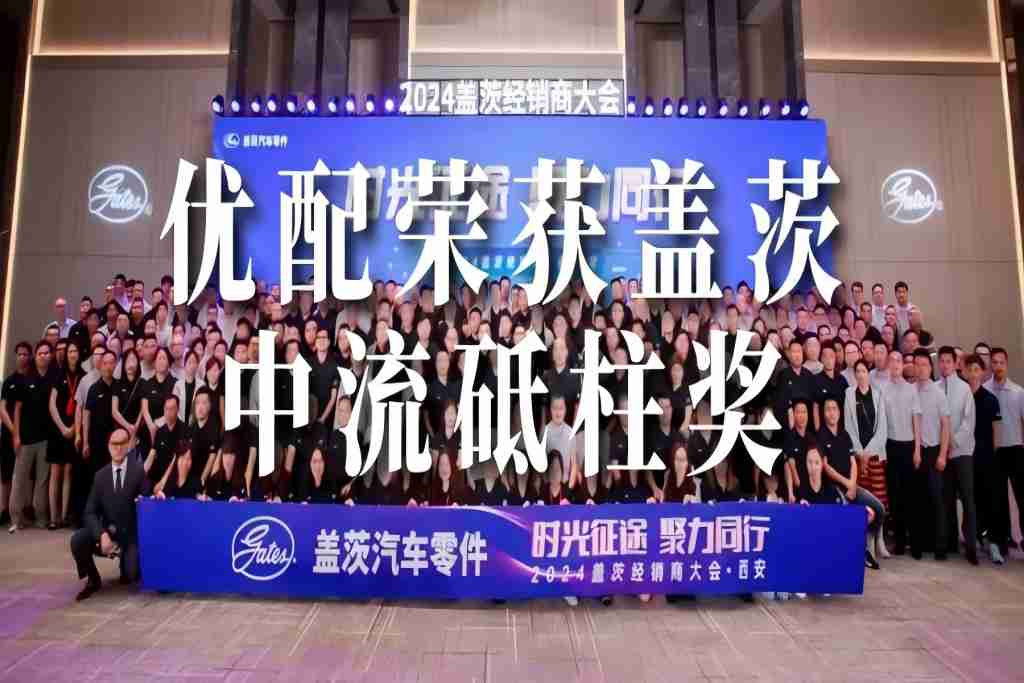 2024年6月24日,“时光征途 聚力同行”—2024盖茨经销商大会在西安隆重召开。全国汽车后市场同仁齐聚一堂,共同见证行业发展的重要时刻。优配车联应邀出席此次大会,并荣获盖茨2023中流砥柱奖,这份荣誉不仅是对过去的肯定,更是对未来的激励!